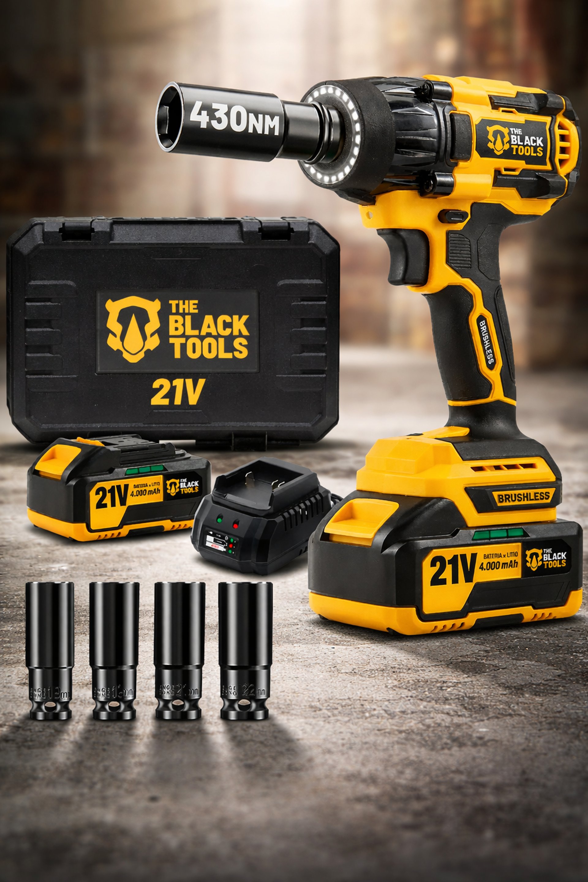 Chave De Impacto Parafusadeira multi uso A Bateria 21v 12 Pol. Com Acessorios E Maleta The Black Tools Alta Potencia Portatil Profissional Bivolt Para Obras E Manutencao