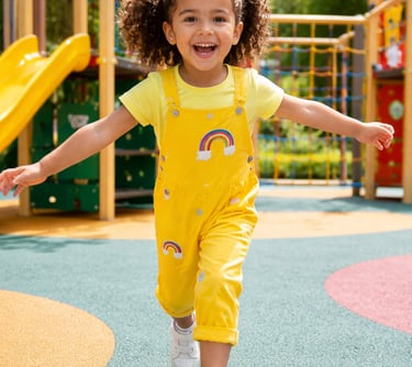 Uma peça realmente segura permite que a criança corra, sente, suba e brinque sem ajustes constantes ou incômodos. Modelagem adequada, tecido respirável e ausência de elementos soltos reduzem riscos comuns do dia a dia, como tropeços causados por barras longas demais ou cordões excessivos. Em situações simples — como brincar no parquinho ou subir escadas — roupas bem ajustadas evitam enroscos e quedas desnecessárias. Conforto e segurança caminham juntos quando a vestimenta acompanha o movimento natural da infância.